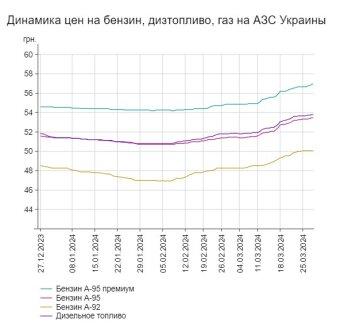 Ціни на пальне в Україні продовжують зростати, за винятком автогазу, який подешевшав на 2 копійки, до 28,12 грн/л.