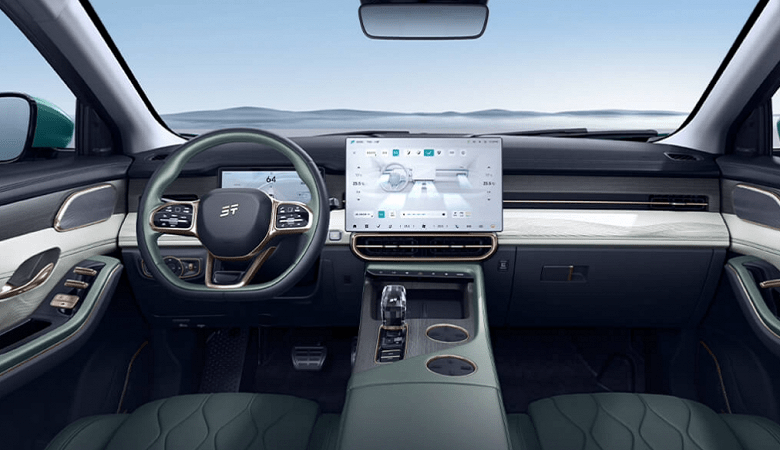 Салон вражає своєю сучасністю: 10,25-дюймова панель приладів взаємодіє з 15,6-дюймовою мультимедійною системою.