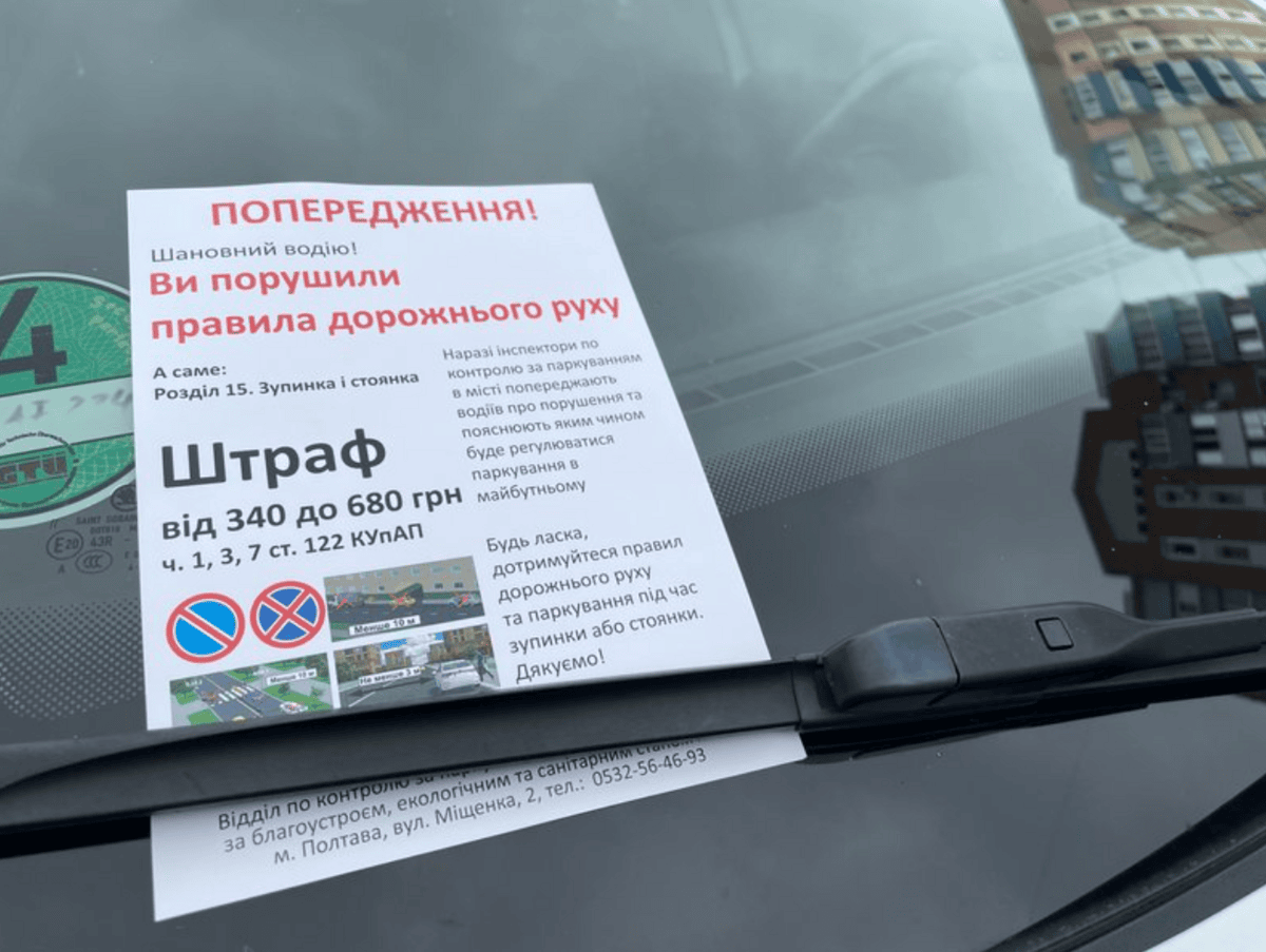 З 18 серпня в Полтаві вступає в дію новий порядок стягнення штрафів за порушення правил зупинки та стоянки. Відтепер інспектори з паркування, створені міською радою 21 липня, матимуть право штрафувати водіїв за невідповідне розміщення автівок.