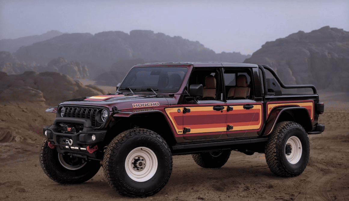 Головним героєм заходу став Bug Out 4xe – гібридний Wrangler, який переробили на експедиційний пікап з подовженою базою (+305 мм) і дахом під кемпінг. Далі йде Convoy – позашляховик у стилі J-серії 80-х із 40-дюймовими шинами і лебідкою на 5,4 т.