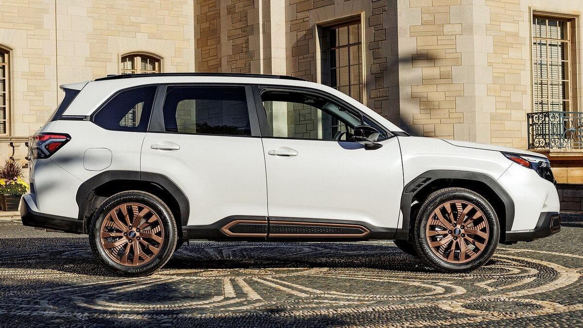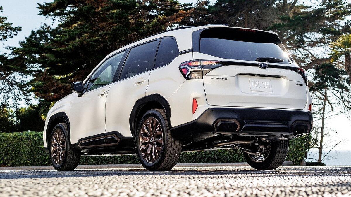 За фотографіями можна здогадатися, що довжина нового Subaru Forester збільшилася, що може вплинути на його геометричні можливості на бездоріжжі. Однак фірмовий симетричний повний привід залишився, доповнений нелакованими пластиковими вставками по периметру кузова і заводським металевим захистом двигуна і трансмісії.