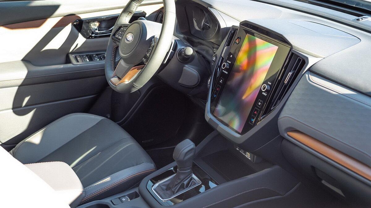 Інтер’єр Forester сильно нагадує нову Impreza, використовуючи простий підхід з архаїчною медіасистемою в чорній рамці, великими клавішами управління та старомодними шайбами. Приладова панель слідує цьому прикладу, представляючи прямолінійні аналогові шкали та скромний екран бортового комп’ютера. Сучасні дотики обмежуються центральною тунельною нішою для бездротової зарядки та набором USB-роз’ємів. Подробиці очікуються наприкінці тижня.