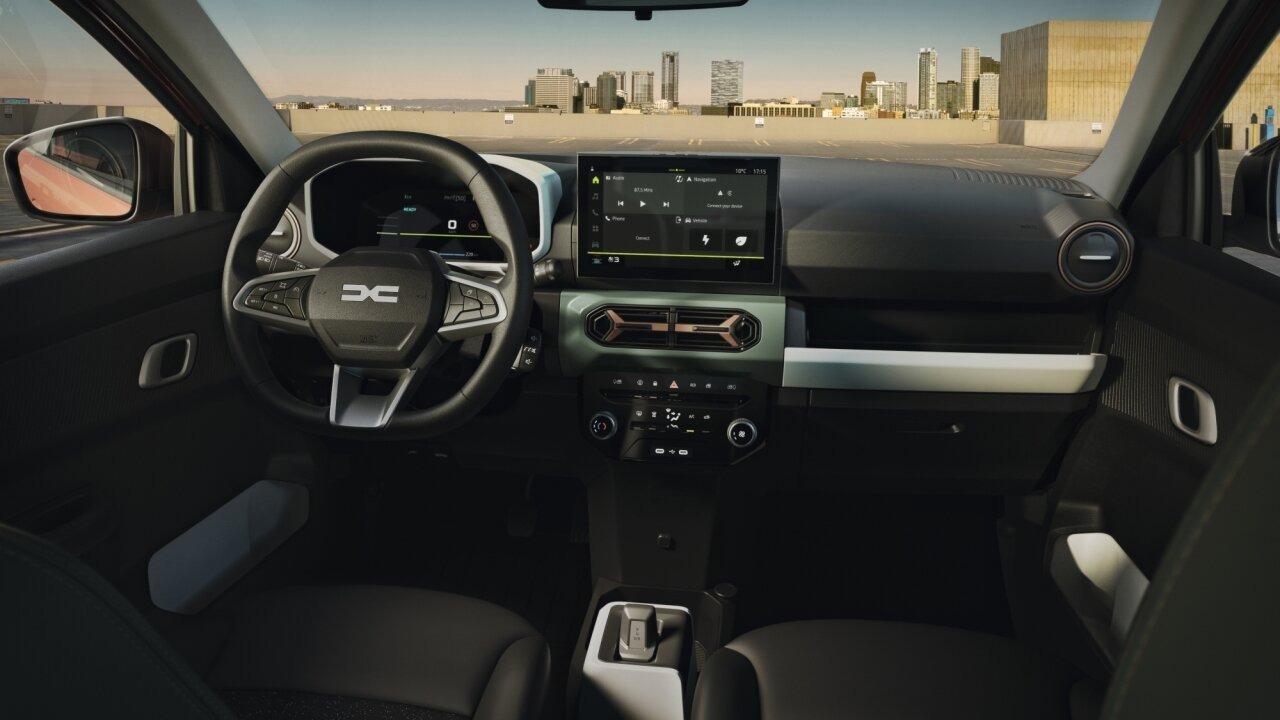 У салоні нового електрокара є цифрова панель приладів і мультимедійна система з 10-дюймовим екраном. Дизайн внутрішнього простору нагадує старшого Duster.