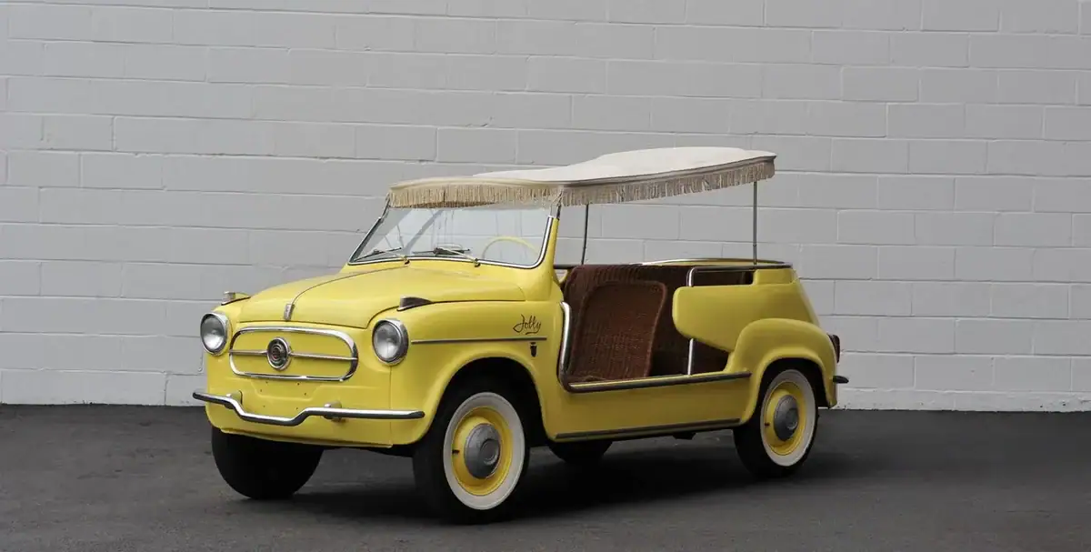 FIAT 600 Jolly було створено спеціально на замовлення Джанні Аньєллі й випущено обмеженим тиражем – близько сотні машин. Цей пляжний кабріолет відрізняється відсутністю бічних дверей і вікон, натомість він має знімний тент-балдахін і мебльований інтер’єр з плетеними кріслами та диваном.