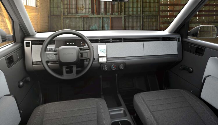 Slate робить ставку на радикальну простоту: відсутність мультимедійної системи (замість неї – універсальне кріплення для смартфона), механічні склопідйомники і мінімум електроніки. Усе це дало змогу утримати споряджену масу на рівні 1633 кг, а ціну скоротити до 20 000 доларів.