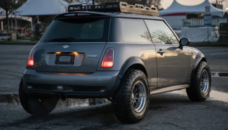 Повідомляється, що йдеться про тюнінговану версію Mini Cooper S 2003 року випуску. Хетчбек має збільшений кліренс, розширені арки, масивні позашляхові шини Maxtrek Mud Trac, шноркель, сталеві бампери з кенгурятниками і багажник на даху.