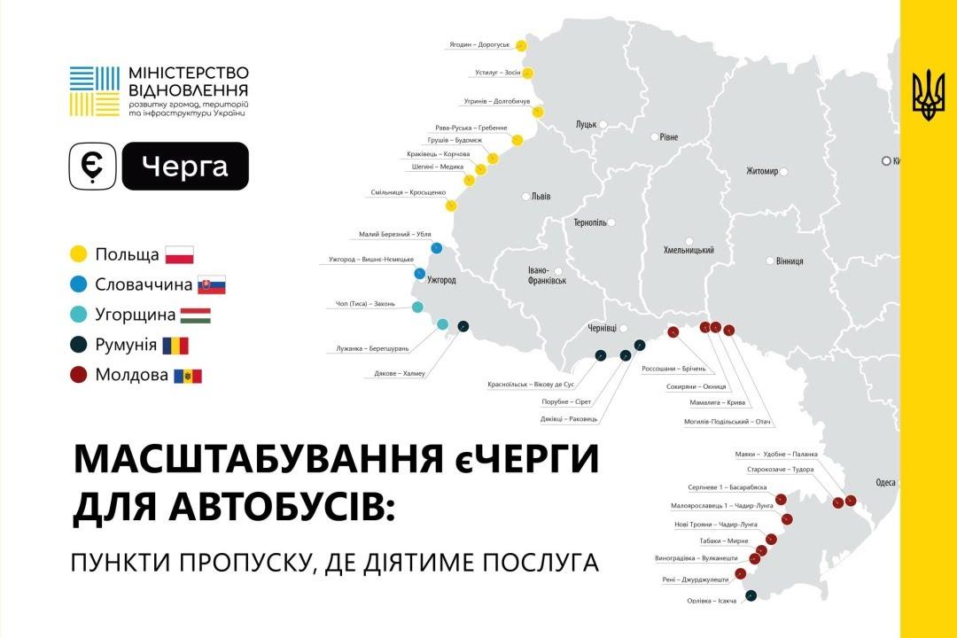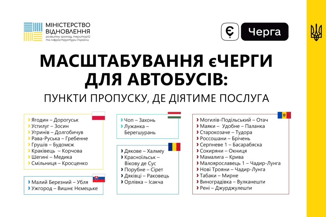 Відтепер рейсові автобуси з України до Польщі, Угорщини, Словаччини, Румунії та Молдови перетинатимуть кордон за попереднім записом через систему “єЧерги”