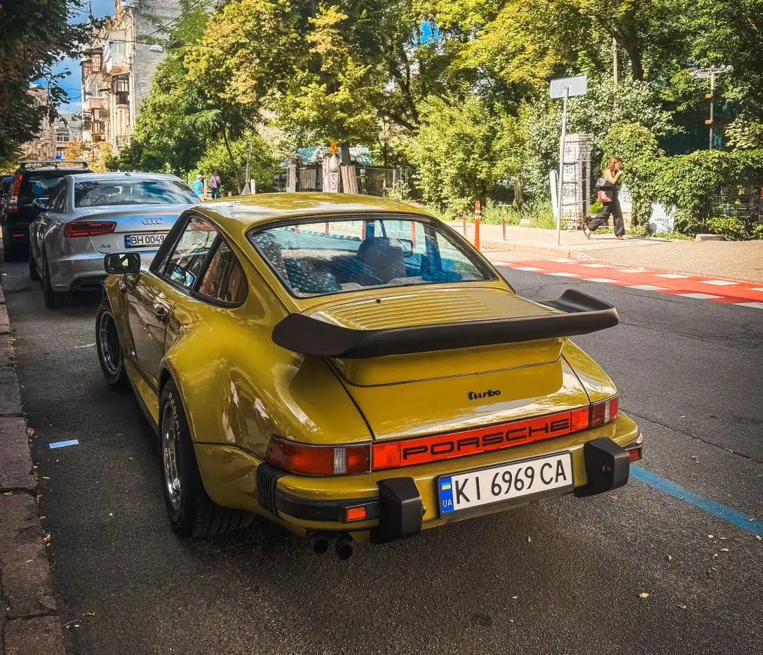 На столичних вулицях автолюбителі сфотографували відреставрований Porsche 911 Turbo першого покоління (кузов 930). Ця модель 1979 року обладнана 3,3-літровим мотором потужністю 300 к. с., розганяється до 100 км/год за 5,2 секунди та розвиває максимальну швидкість до 260 км/год.