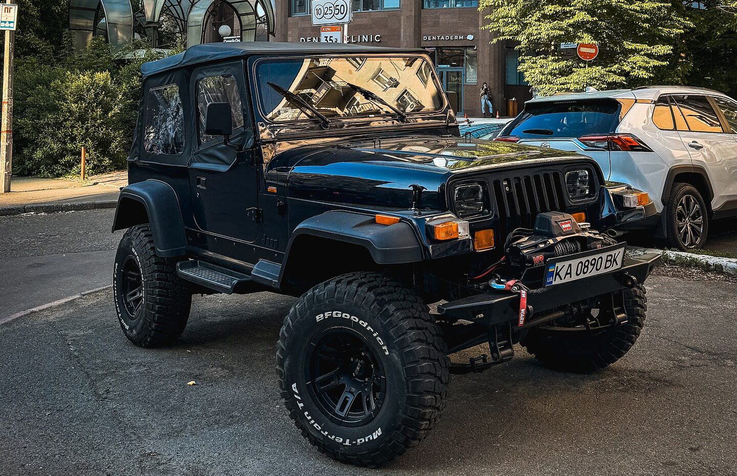 Wrangler YJ легко відрізнити за прямокутними фарами — унікальною особливістю саме цього покоління. Для України подібні автомобілі є рідкістю і представляють скоріше колекційну або хобі-цінність. Вартість даного екземпляра може досягати 15–20 тисяч доларів (приблизно 620–830 тис. грн), враховуючи його стан і тюнінг.