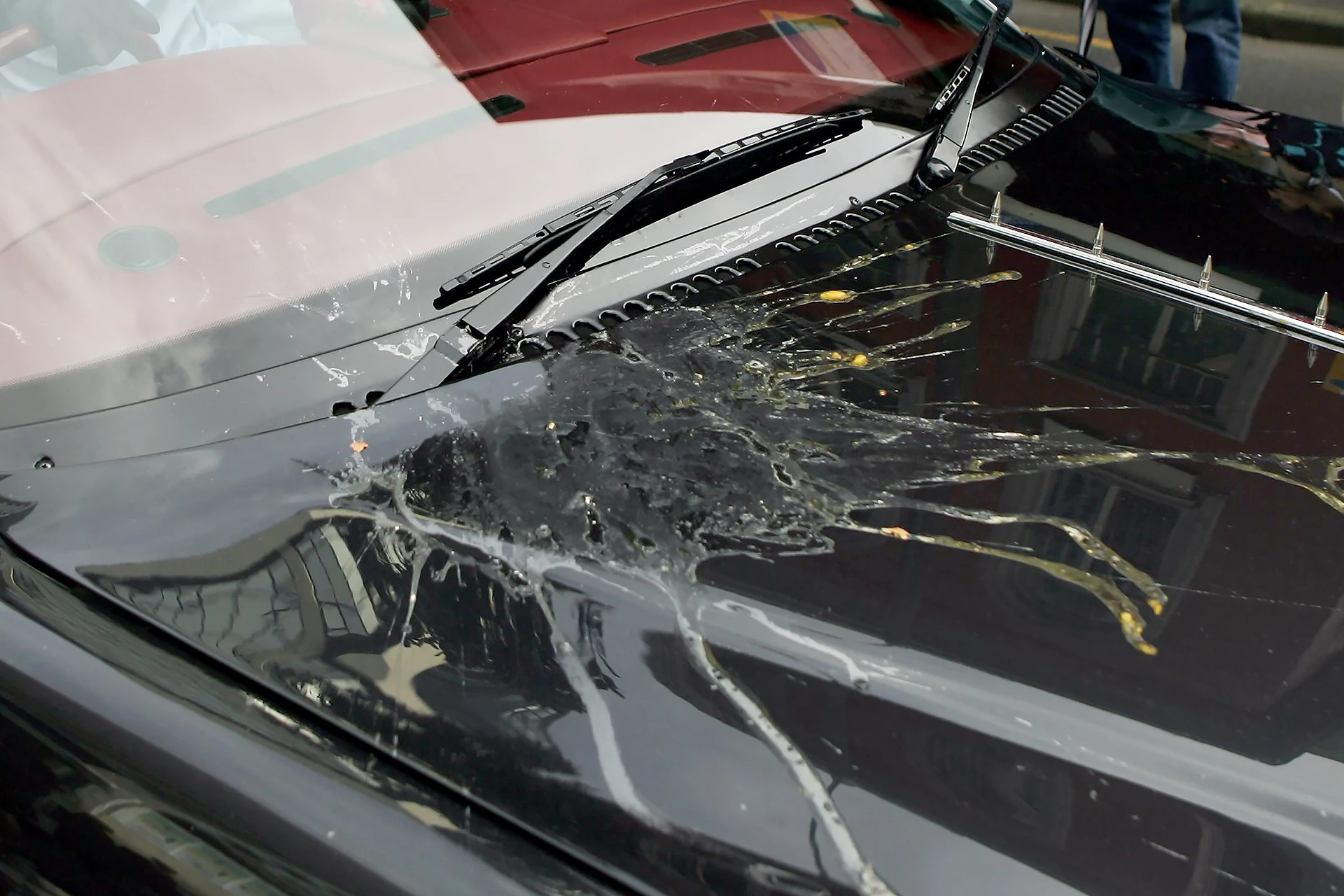 Коли водій, здивований ситуацією, намагається очистити скло за допомогою двірників, яйце швидко створює липкий і непрозорий шар. Це не тільки заважає видимості, а й на якийсь час повністю відволікає водія.