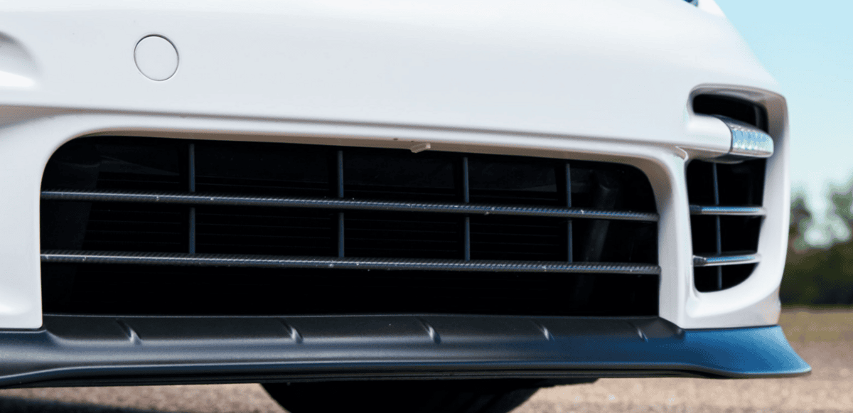 Йдеться про елемент, відомий як повітряна заслінка або «ейр дам». Вона перенаправляє високошвидкісні потоки повітря від передньої частини автомобіля до боків, що значно знижує опір повітря під днищем. На високих швидкостях цей елемент розділяє потік повітря на зони високого тиску зверху і низького тиску знизу, що забезпечує краще зчеплення з дорогою.